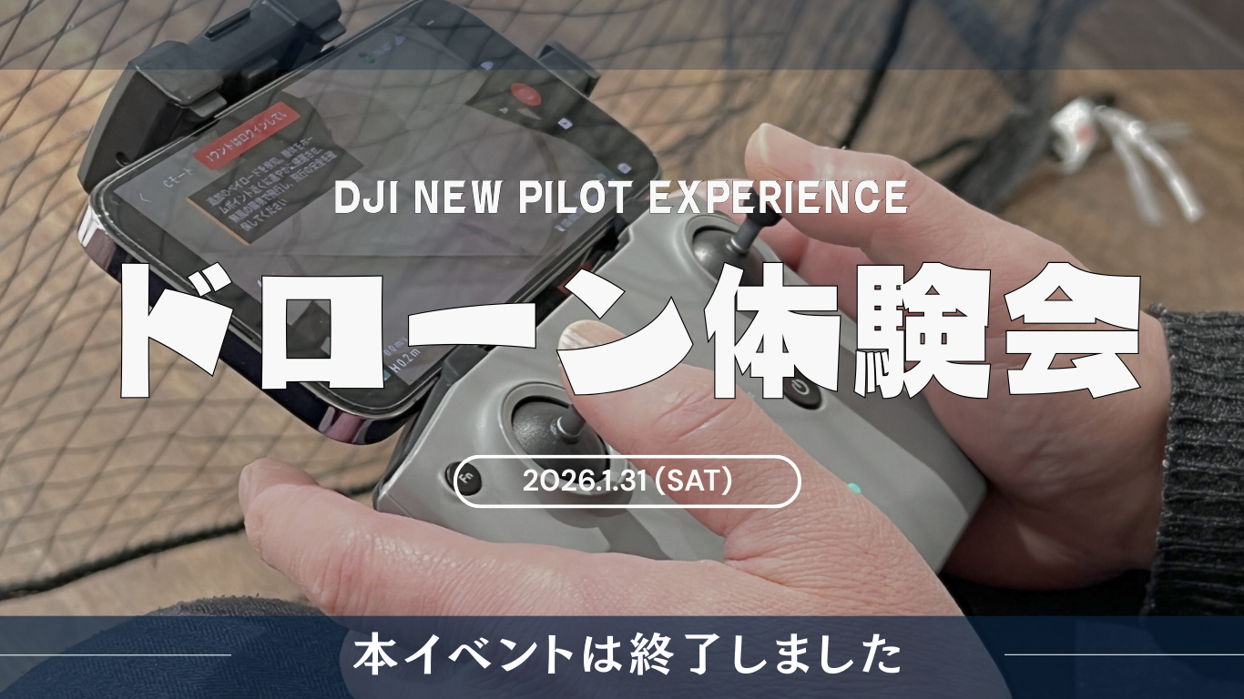 1/31 (土) ドローン体験イベント開催のお知らせ 2026年1月14日 日頃よりご愛顧いただき、誠にありがとうございます。 大人気ドローン体験イベント「DJI NEW PILOT EXPERIENCE」を今月も開催いたします!本イベントは、これからドローンを始めたい方・空撮に興味がある方へ向